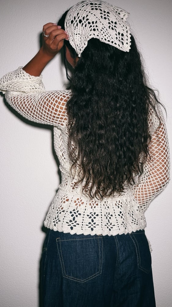 The Flora Bandana and Sicilia Top are part of the same collection, inspired by a piece made by my granny. Both feature a delicate stitch that is feminine, timeless, and versatile.