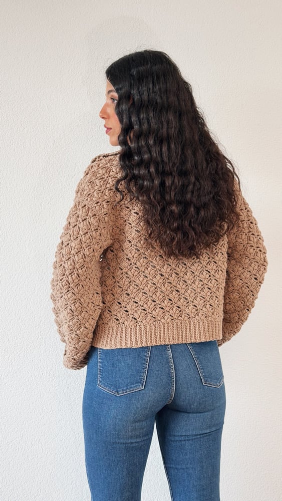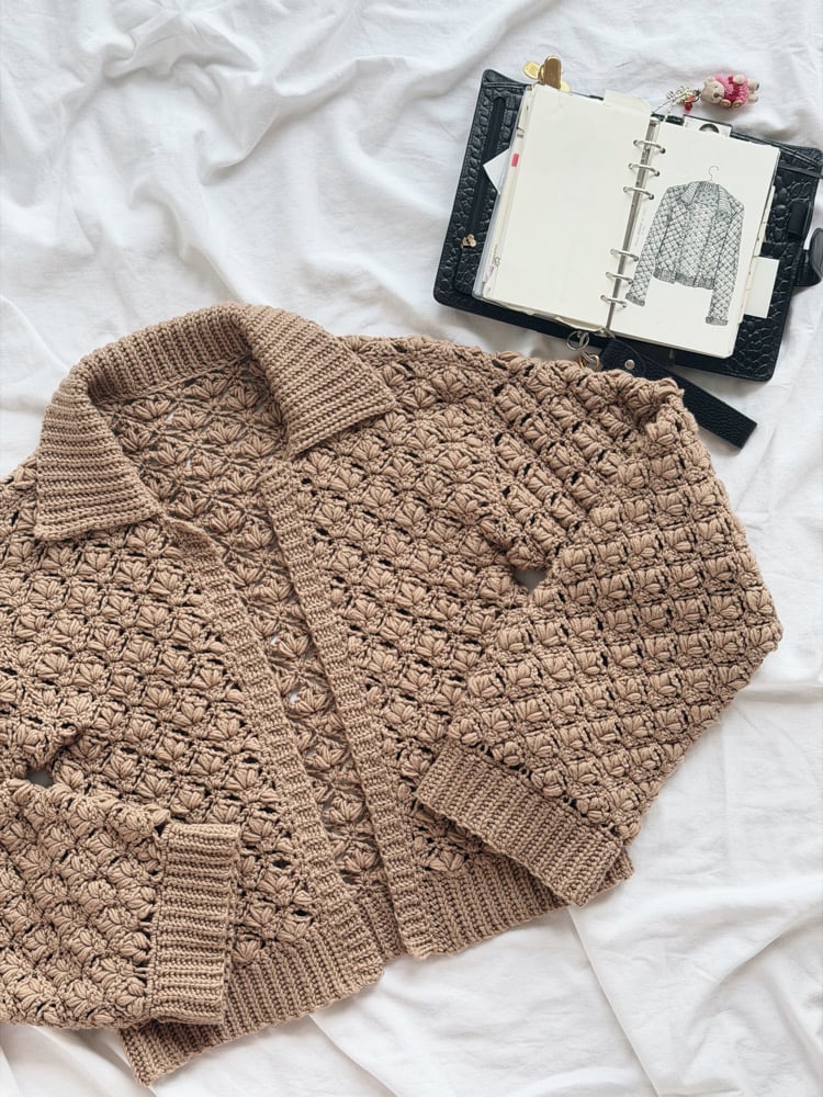 For the Lily Cardi I wanted to design an open cardigan that feels comfortable and relaxed. After testing many stitches and making a lot of swatches, I chose this stitch with puff stitches that remind me of lily flowers. It gives the piece a beautiful texture and a nice weight.